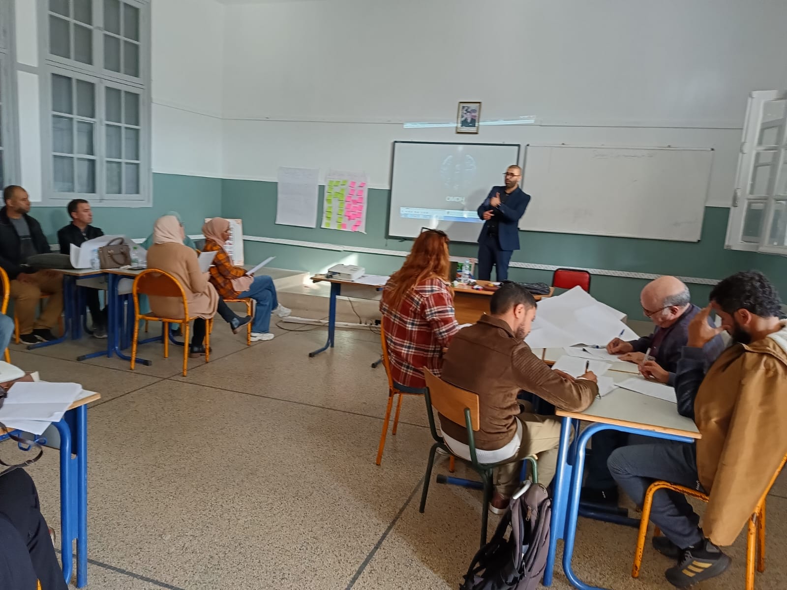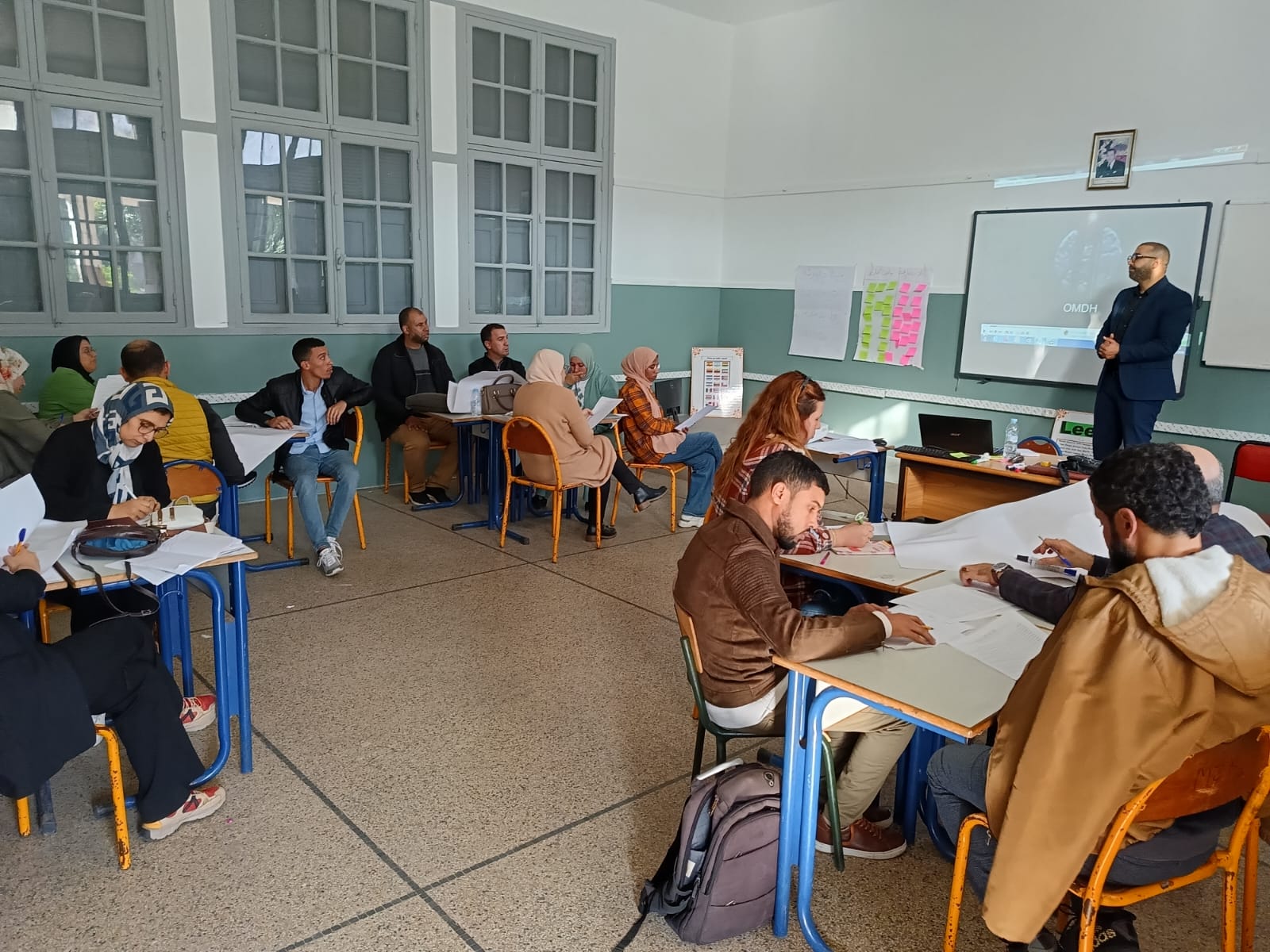 Dans le cadre de la coopération et du partenariat entre la Direction Provinciale du Ministère de l'Education Nationale et le Centre Marocain de la Jeunesse et des Transitions Démocratiques, un atelier de formation a été organisé au profit des coordinateurs des Clubs d’éducation à la citoyenneté et aux droits de l’Homme des établissements de la direction sur le thème : « L’éducation aux valeurs de la citoyenneté et des droits de l’Homme » le mardi 5 novembre 2024, au Centre de développement littéraire et artistique – Vue générale – encadré par M. Youssef Al-Kalakhi, coordinateur provincial du programme d’éducation à la citoyenneté et aux droits de l’Homme, et de M. Said Lahna, coordinateur provincial du programme APT2C. L'atelier de formation a abordé le cadre conceptuel de l'éducation aux valeurs de citoyenneté et aux droits de l'homme et son rôle dans la lutte contre les comportements déviants en milieu scolaire, tout en mettant l'accent sur les accords et traités qui soulignent la nécessité de promouvoir les valeurs de droit et de devoir dans les écoles publiques et de former un citoyen responsable et actif.